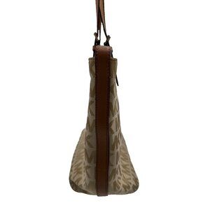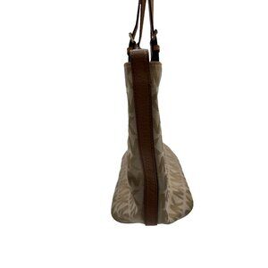 Elevate your accessory game with this chic pre-owned Michael Kors Jet Set Purse, featuring the iconic monogrammed Jacquard MK print, complemented by rich brown leather trim. This handbag exudes sophistication and embodies the quality and craftsmanship that Michael Kors is renowned for.