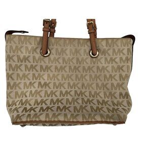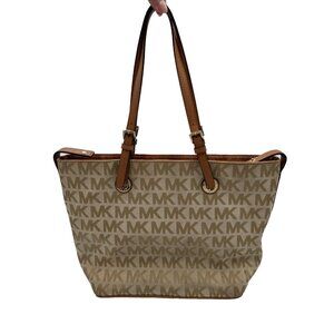 MICHAEL KORS JET SET hand bag Purse MK signature Jacquard cream gold