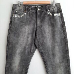 MICHAEL KORS / Jewelled Gem Pocket Cropped Skinny Jeans Grey Sz 10