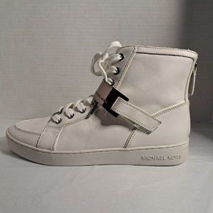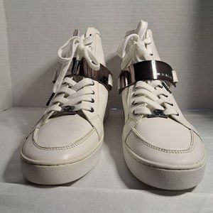 MICHAEL KORS LEATHER SNEAKERS Sz 9.5 METAL CLIP ZIP RARE COLLECTOR STUNNING
