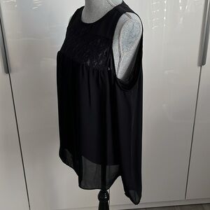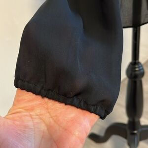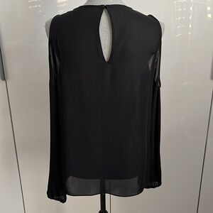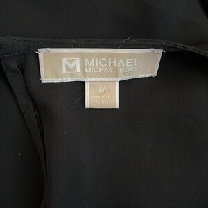 MICHAEL KORS black cold shoulder long sleeve blouse in crepe like polyester material. Pretty lace detail on the front and elastic around wrist. Longer style can be tucked in or left out. Back button closure. Tag was cut out. Excellent condition.