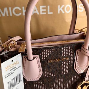 MICHAEL KORS Mercer Medium Pebbled Leather Crossbody Bag Brown/Pink Perforated
