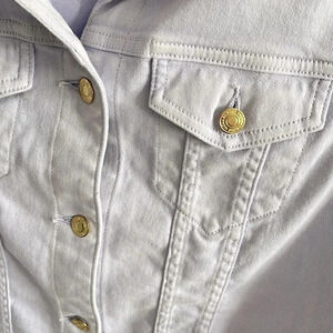 MICHAEL KORS NWOT Women’s Denim Jean Jacket Stretch Gold Button Lavender, Size L