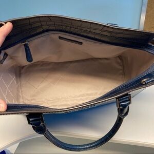 MICHAEL KORS Navy Blue Crocodile Embossed Leather Selma Tote Satchel