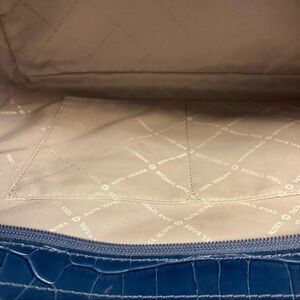 MICHAEL KORS Navy Blue Crocodile Embossed Leather Selma Tote Satchel Crossbody. In almost new condition. A small stain and a small scuff as pictured. Beautiful, functional a statement piece. Retail - $548.