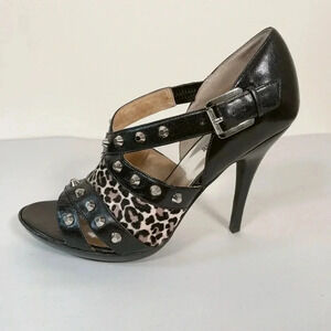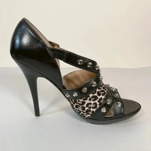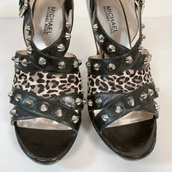MICHAEL KORS | PEEP TOE LEOPARD PRINTED STUDDED HEELS