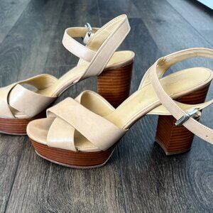 MICHAEL KORS Platform Heels - Leather - Cream - Size 9.5
