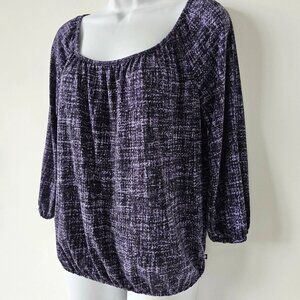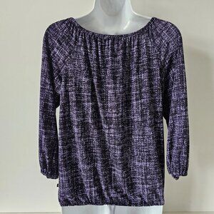 MICHAEL KORS Purple White Scoop Neck 3/4 Sleeve Jersey Top Small