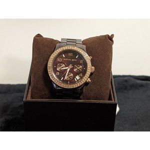 MICHAEL KORS RUNWAY CHRONOGRAPH DATE CERAMIC WOMEN'S WATCH in Espresso MK5517