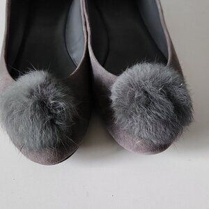 Selling MICHAEL KORS | Remi Rabbit Fur Pom Suede Ballet Flats Gray Sz 9M.