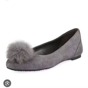 MICHAEL KORS | Remi Rabbit Fur Pom Suede Ballet Flats Gray Sz 9M