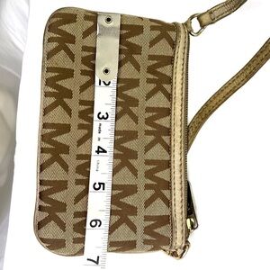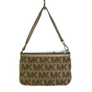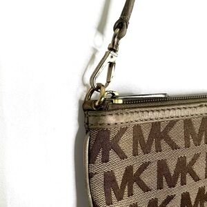 MICHAEL KORS SMALL POUCH MONOGRAM MK WRISTLET BROWN MK CANVA GOLD HARDWARE MINIATURE MINI BAG WOMEN