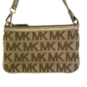 MICHAEL KORS SMALL POUCH MONOGRAM MK WRISTLET BROWN MK CANVA GOLD HARDWARE WOMEN