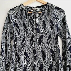 MICHAEL KORS Semi-Sheer Lightweight V-Neck Blouse Top B&W Sz XXS Flawed