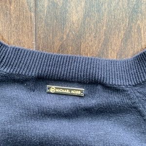 Striped green and blue sweater from Michael Kors. Small gold emblem on the back.
