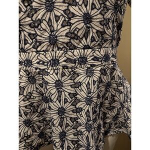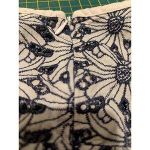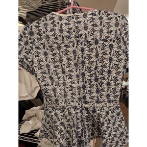 MICHAEL KORS White Navy Embroidered Eyelet Peplum Shirt Top - Womens Size 6