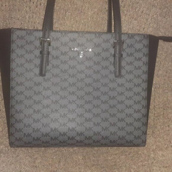 MICHAEL KORS-JET SET Charm-MD TZ Tote-Black Signature-NWT