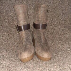 Michael Kors Lizzie suede shearling lined wedge boots