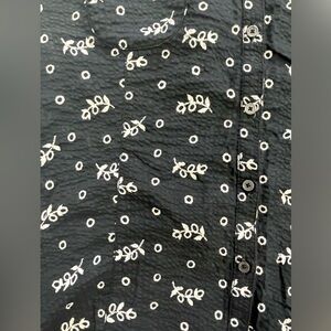 Get glamorous with Michael Kors’ black and white floral button down blouse! Featuring a cap sleeve cut and a beautiful display of contrasting colors, this blouse is sure to stand out in any wardrobe.