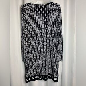 EUC Michael Kors geometric pattern black and white dress. Black white stripe on the bottom. Comfy pull on dress. Crew Neck Long Sleeve Polyester Spandex Blend.