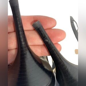 Beautiful shoes that give the Valentino Rockstud vibes. Black leather with gold studs. Good condition. Some minor scuffs can be seen and marks on the interior. Size 7.5. See photos for condition and measurements.