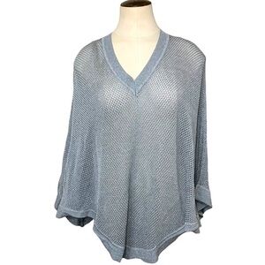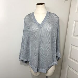 MICHAEL Kors Silver Metallic Gray Oversized Mesh Kimono Shirt V Neck Poncho XS