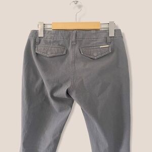 Stretchy skinny pant with zipper pockets details and zipper ankle. Material is 95% cotton and 5% spandex. Great condition. Some small signs of wear, see in last photo. Size 2.