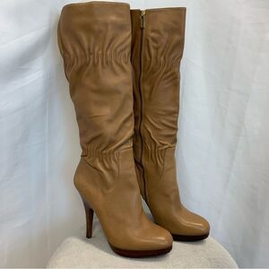 Michael Kors camel brown leather high heel platform slouchy ruched boots Sz 10