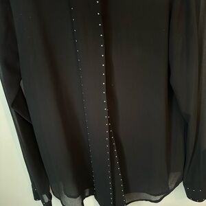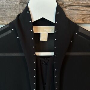 Michael Michael Kors Chiffon Tie-Neck Blouse. It is made from sheer chiffon with subtle metal studs and a tie-neck detail.
