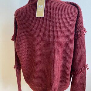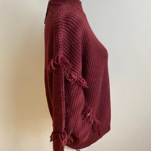 MICHAEL Michael Kors BNWT Fringe Burgundy Sweater Mock Neck Knit Sz Large New