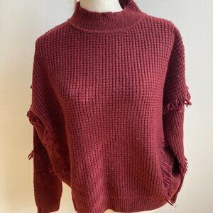 MICHAEL Michael Kors BNWT Fringe Burgundy Sweater Mock Neck Knit Sz Large New