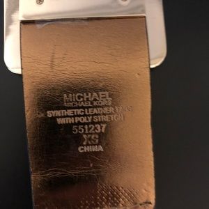 MICHAEL Michael Kors Stretch Belt in Brown and Straw Poly Stretch Material. This belt is perfect for wearing high around the waist with a dress or high rise pants. This belt is quite small and looks best when worn on the 3rd hole (as pictured). It is meant to be worn high around the waist vs. at the hips. Excellent condition - like new!