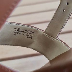 Luggage leather instills the T-strap design with so-now appeal, while a jute wedge heel offers just the right amount of lift.