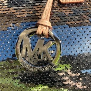 MICHAEL Michael Kors Silver Sequins and Calf Leather Medium Grayson Boston Bag