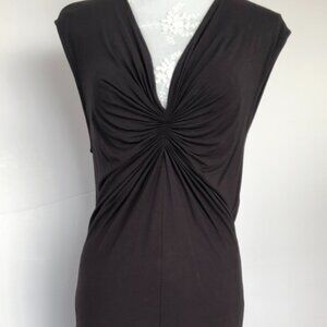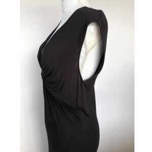 MICHAEL Michael Kors Sleeveless Center Front Ruched Rayon Black Midi Dress S/P