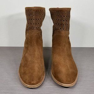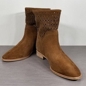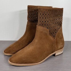Understated Western influence defines a go-to suede bootie featuring distinctive diamond cutouts at the shaft.