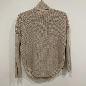 Waffle knit textured cream turtleneck sweater