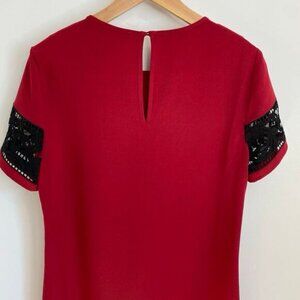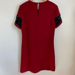 MICHAEL Michael Kors Women's M Red Black Lace Short Sleeve Shift Dress Knee