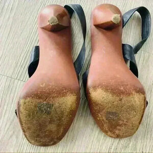 MICHEAL KORS BLACK LEATHER SLINGBACK OPEN TOE HEELS SANDALS SIZE 8