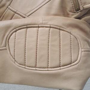 This M.K motorcycle jacket with gold tone hardware, is BUTTERY SOFT! Has pockets and belts on each side for a looser or tighter fit. Zippers in the back for fit or style.