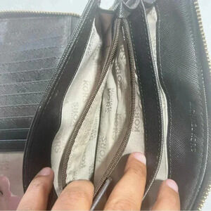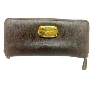 MICHEAL KORS MONOGRAM BROWN WALLET GOLD HARDWARE ZIPPER CLOSURE