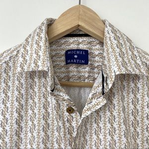 MICHEL MARTIN MENS BUTTON DOWN SHORT SLEEVE PAISLEY SHIRT, 100% COTTON, MEDIUM