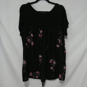 Elevate your casual wardrobe with this chic black top, featuring a floral back panel for a touch of elegance