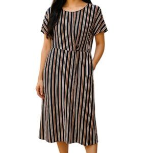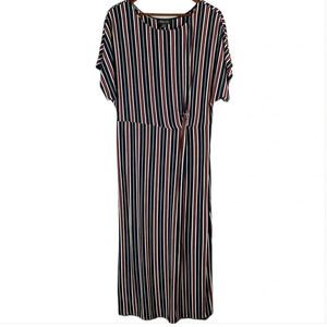 MICHEL STUDIO COLLECTION Navy Stripe Maxi Dress Twist Gathered Waist Coastal X