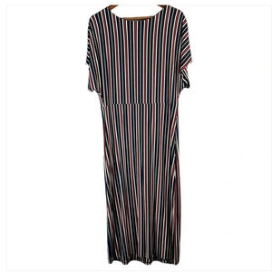Women’s navy blue, red and white Michel Studio Collection vertical Striped Maxi Dress.