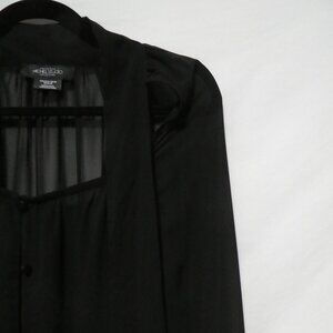 MICHEL STUDIO COLLECTION | size 16 | Black Sheer Button-Up Blouse With Neck Tie