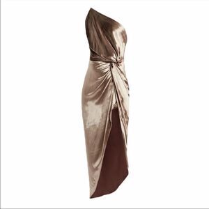MICHELLE MASON Silk Velvet Asymmetrical Draped One-Shoulder Midi Dress Gold 6
