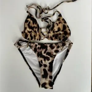 Micro leopard print bikini. Top and Bottom: XS