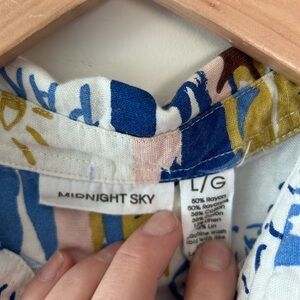 MIDNIGHT SKY Linen Blend Boxy Button-Up Top – Size Large