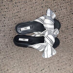 MIISTA LONDON-Valerie-Black & White Bow Slide Sandals-Size 37/US 6.5-Excellent